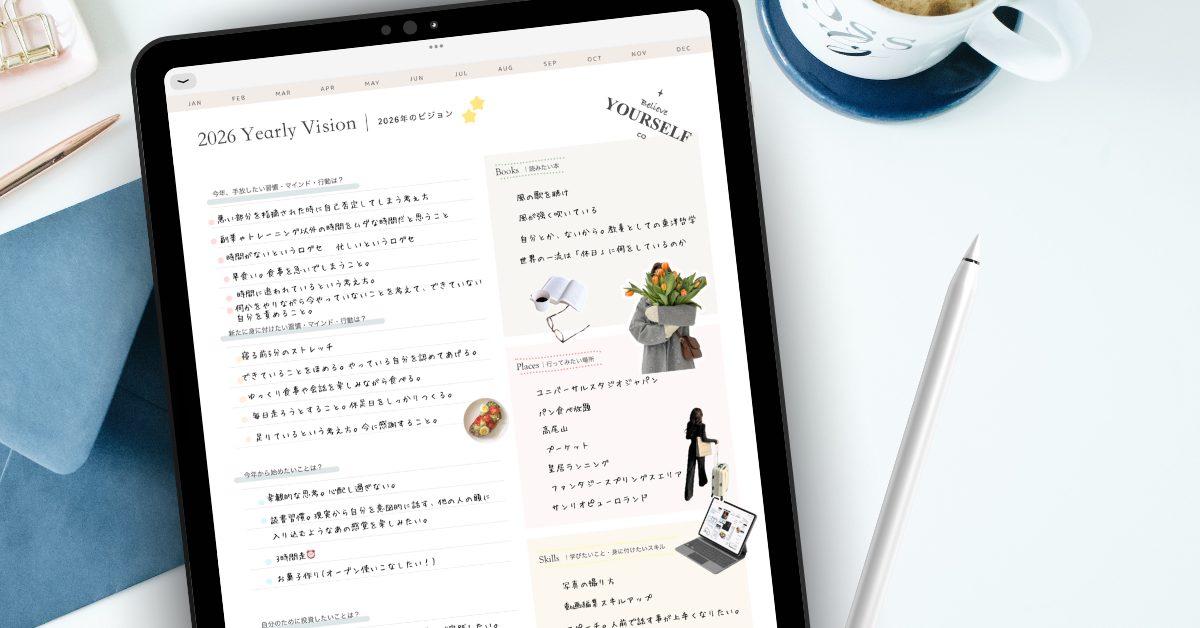 今回紹介したワークはもちろん、目標を毎月/毎週の予定に落と込むまでの全てのステップがセットになったゴール設定手帳『デジタルプランナー2026』大好評発売中です!